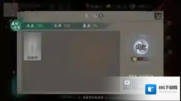 7、通关后会获得铜币奖励,铜币可以点击鬼店来升级主角的属性,提升一定次数后会获得珍宝奖励。