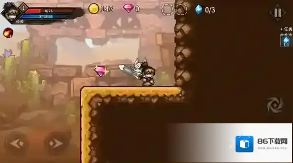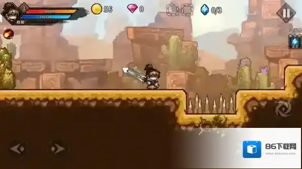 4、选好关卡后就会正式开始,正式开始后左边控制左右方向,右边是跳跃、普攻和技能按键。