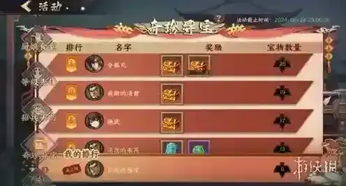 6月11日0点,将根据宝物数量结算排行奖励,玩家可赢取橙将自选箱、补天石等排行奖励。