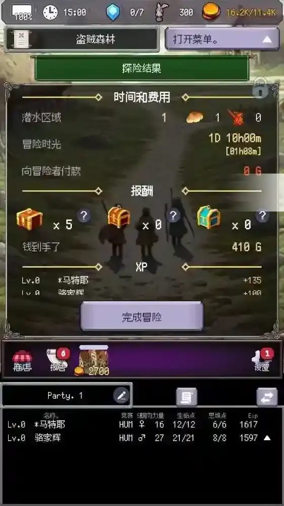 4、点击城外可以派遣冒险者外出探索,点击查看区域能探索不同的副本。