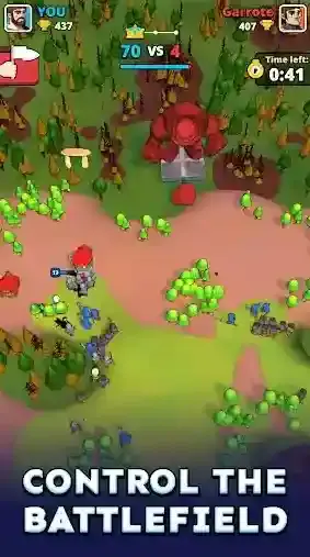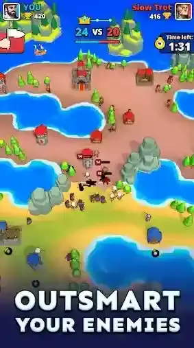 小小冲突(Tiny Clash!),由知名厂商Voodoo所推出的一款休闲塔防类手游。玩家将会踏入一个充满了战斗的惊险世界当中,与来自世界各地的玩家们展开激烈无比的1v1对战,在自己的领地上建造和部署各种独特的建筑,派遣各种强大的单位去进攻对手的领地,消灭所有敌人并占领对手的区域,取得最终的胜利!不断的去收集更多的资源,解锁更多的建筑和士兵,战胜更多强大的对手!