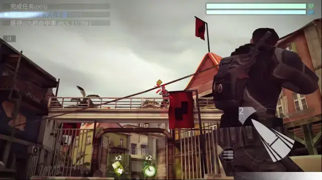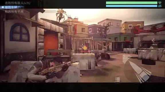 3、进入关卡后左边是移动视角,右边是射击按钮,关卡的目标会在左上角显示。